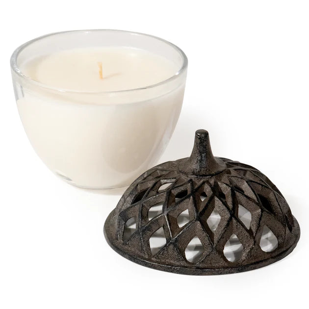 Poured in a beautiful glass and metal acorn shaped form, this gorgeous soy-blend candle has a traditional harvest scent, filled with notes of sugared pumpkin, cinnamon, and vanilla, plus all the warm and cozy fall vibes that will welcome in the season. Handcrafted in California.