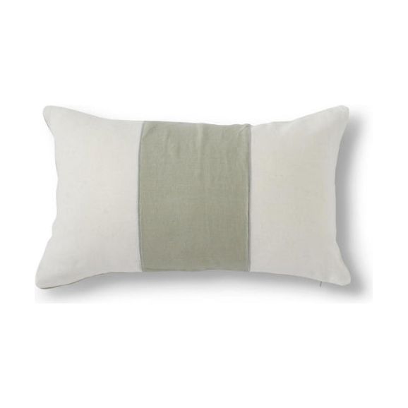 This rectangular pillow measures 14" high by 20" wide and features a natural Italian linen front and back with a linen applique and delicate 100% silk embroidery. Designed for easy care, the removable shell should be dry cleaned only—avoid washing, bleaching, tumble drying, or ironing. Clean with any solvent except tetrachlorethylene to maintain its quality. Add a touch of refined elegance to your space with this stylish center stripe pillow.