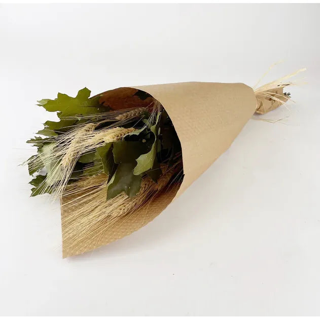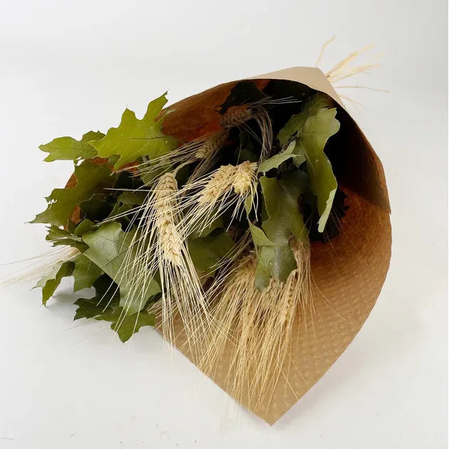 Our floral team designed this beautiful bouquet using a mix of natural wheat and green oak leaves to create this natural harvest bouquet look. Each bouquet is designed and handcrafted in our California design studio.